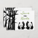 Pandas och bambubryllop - Spara datum-kort i svart, vitt och grönt.