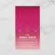 En rik som är rödbrun till rosa ombre för sockervadden, gör en härlig lutningbakgrund för en damastast panel på denna visitkort för den hallonOmbre damastast panelen. Affärsnamn- och kontakttrycket under damasten med den samma panelen som upprepar på det omvänt för att markera mer ytterligare information om kontakt. Passande för ett nummer av ockupationar och affärer som kan inkludera skönhetbranschen, inredingsdesign som utformar eller konsulterar. Tillgängligt i omväxlande färger med att matcha produkter.
