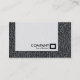 En visitkortsmall med en tilltalande halvgenomskinlig panel som är placerad med en 3/8-tums lämnat huvudskärm till lämnat och vid grund, med en större marginal på 3/4 tum till högerna. Bakgrunden är dekorerad med en tilltalande abstrakt struktur, bild eller teckning, som också kan ersättas med din egen bild om du föredrar det. Företagsuppgifter på framsidan med namn och kontaktuppgifter på baksidan. Utformningen kan också anpassas ytterligare. Den kvadratiska logotyp som används i detta mönster kommer från en av Zazzles användbara bild typsnitt, den kan behållas som dekorativ logotyp stil, ersättas med en annan symbol eller din egen logotyp.