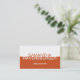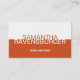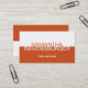 Enkel, ljus och modern är affärskortets utseende. Ett företag eller ett personligt namn dominerar på kortets framsida med den huvudsakliga kontaktinformationen, antingen ett mobilare nummer eller en webbplats, som knackar ut från den ljusa orangen nedan. Lägg till en beskrivning av tjänster på baksidan med kontaktinformationsutskrift nedan i orange. Finns i alternativa färger.
