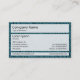 En visitkortsmall med en design på tre paneler framtill, med en layout för sidhuvud, brödtext och sidfot för all huvudinformation. På baksidan av kortet finns det en enda huvudpanel som kan användas för att lägga till ytterligare information och/eller bilder eller lämnat tom med en användbar anteckningspanel. Den här versionen har en bild struktur i bakgrunden med halvgenomskinliga vita paneler som gör att struktur kan visa sig genom utan att textens skärpa försämras. Den här mallen kan också anpassas ytterligare, t.ex. kan en logotyp läggas till på den lämnat sidpanelen, typsnitt och färg kan också ändras. Lämpligt för många typer av företag. Det finns också ett växande urval av andra varianter av den här mallen.