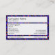 En visitkortsmall med en design på tre paneler framtill, med en layout för sidhuvud, brödtext och sidfot för all huvudinformation. På baksidan av kortet finns det en enda huvudpanel som kan användas för att lägga till ytterligare information och/eller bilder eller lämnat tom med en användbar anteckningspanel. Den här versionen har en bild struktur i bakgrunden. Den här mallen kan också anpassas ytterligare, t.ex. kan en logotyp läggas till på den lämnat sidpanelen, typsnitt och färg kan också ändras. Lämpligt för många typer av företag. Det finns också ett växande urval av andra varianter av den här mallen.