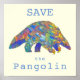 Pangolin är förmodligen det kittaste djur du aldrig hört talas om eftersom pangolin tyvärr är en mycket utrotningshotad art. Här är en chans att bekämpa orsaken och belysa det vackra djurets svåra belägenhet, som drabbar tio på det . Den här söta promenadpangolin i färglösa nyanser, visar pangularns invecklade kroppsbepansar för att skydda sig mot rovdjur. Den blå sloganen " Spara the Pangolin" kan anpassas med hjälp av den mall som finns för att skapa ditt eget utrotningshotade vilt poster för att påminna vänner och kolleger på kontoret om pangolins svåra belägenhet. Inte bara den påstådda orsaken till koronaviruset och prins Williams favoritdjur, utan ett djur som är allvarligt hotat. Färgfull miljöfarlig Pangolin-miljömässig multifärgad djurkonsaktivism - naturillustration poster av konstnären Catherine Sweetman