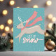 Ett icke-konfessionellt platt kort för högtider/jul med handgjorda bokstäver som lyder "let it snow" och en fantasifull illustration av en ren med scarf som springer genom snön. Skicka ett till alla du håller "kära" denna högtidssäsong!