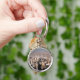 Panorama- beskåda av staden rund silverfärgad nyckelring