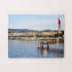 Panoramisk syn på Genève med traditionell båt i hamndistriktet, Kantonen Genève, Schweiz