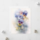 Fintliga rutor i blå, lila och gult visas med mjuka, flytande vattenfärger som skapar en drömmande, eterisk effekt. Bakgrunden förblir mistig och subtil, vilket ökar fokuseringen på de pulserande blommorna.
