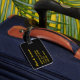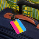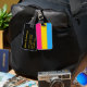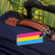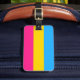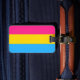 Bagagetaggen med pansexual pride flagga, gult namn och adress på svart bakgrund. Anpassa med namn och adress-information med hjälp av de enkla mallarna. Teckensnitt färg, stil, storlekt teckensnitt och färg i bakgrunden är anpassade. Perfekten färg för resor.