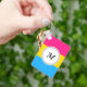 Keychain with the pansexuality pride flag with rainbow stripes of pink, yellow, and blue, pan pride design with a custom text field for your initial