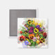 En vacker skål planterad med pansier i så många vackra färg, med en skuggbild i bakgrunden.