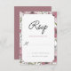 Den här vattenfärgen, blommigten, svarskortet har en vit mittpunkt och är inramad med platta-färgad och dammiga ro-färgad-rutor.<a href='http://www.freepik.com/free-vector/wedding-invitation-with-botanical-style_1062569.htm'>Designad av Freepik</a>). <br/>() Kortet är enkelt att anpassa med din text, ditt teckensnitt, ditt teckensnitt, färg och ditt val av sex pappra typer.<br/>() Inte exakt vad du är tittar för? Alla våra produkter kan vara designad anpassningsbar för att uppfylla dina behov utan kostnad för extra.<br/>() Kontakta oss helt enkelt på askcottonlamb@gmail.com<br/>() Samordnande produkter finns: Pansy Blommars Investigation<br/>Pansy Blommars Postage Frimärke<br/>Pansy Blommars Tack Photo Card