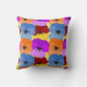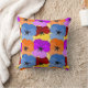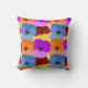 Dekorativ kudde har en Vår-design av lila, blått, orange och rött med rutor för gult som är lagrade på varandra på en fält av gulten.