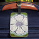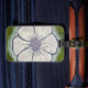 Den här jättelika vita och lila pansy skjuter av bagagetaggen skapar att väskan står ut. Den handmålade designen sitter på en grönt av riken. Originalkonsten är handmålad - inte en AI-design.