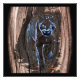 En svart panter målad på mörkt trä som ger illusionen att den kommer ut ur trädet.
