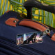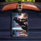 Coola AI skapade bilden av en svart pander sitta på tak i Manhattan i New York på natten. Baksidan av bagagetaggen kan du enkelt anpassa med ditt namn och adress.
