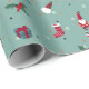 Haz que tu regalo aún sea más especial con este diseño con papa Noel, regalos, calcetines colgados, ramas de abeto sobre fondo azul claro.