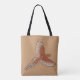 Tryckt totebag med ett mönster av en Amazonas-papegoja i flykt - roströd / terrakotta och krämfärg mot en kamelfärgad bakgrund - digitalt förbättrad fotografi