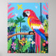 Ta med den livfulla skönheten från regnskogen in i ditt utrymme med denna fantastiska papegoja konstaffisch. En strålande färgad papegoja sitter på en gren mitt i en frodig djungelscen, komplett med exotiska blommor och lövverk. Detta är ett vackert tillskott till hemmet eller kontoret. Perfekt för fågelälskare och alla som uppskattar tropisk inredning.