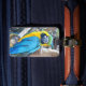 Fotografi av en härlig färgrik macawpapegoja. Du kan ändra den bruna färgen av baksidaen i någon färg som du gillar, genom att skräddarsy produkten.