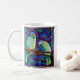 Detta täcke gjordes omkring ett år sedan och baseras på ett kort av min papegojor, Loren (höger) och (lämnade) Rosita. Täcket är omkring 23 flytta sig mycket långsamt kvadrerar och hängningar bak papegojaburen i mitt hus. Båda fåglar är Röda-Lored amasonpapegojor och är infödda till Costa Rica (var jag bor). Loren satt på en pall bredvid mig helheten - tid som jag planlade denna mugg!