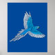 Skriv ut en Amazon Parrot under flygning - cerulenblått och vitt mot en djup koboltblå bakgrund - digitalt förbättrad fotografi