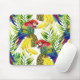 Tropisk bakgrund för fåglar | med papegojor och frukt på vitbakgrund. © och ® Bigstock® - all reserverad rättigheter.