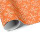 Papel de regalo con copos de nieve sobre fondo naranja