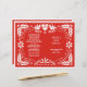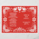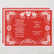 Papel Picado lovebird red bröllop fola foldade program som visar två vita blommor och ett kärlek hjärta med kärlek och blommor, löv och små punkter på rött. Den mexikanska folkkonsten stil blommigt bröllop-mallen är helt och hållet anpassade. Använda är bara den här typen av papper när den klämmer väl.