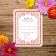 Det här vackra röda bröllopssvarkortet inspireras av mexikanska bröllop-banderoller som kallas papel picado. De är perfekt för ett latinx-destinationsbröllop mellan firande eller Mexiko. Se den samordnande samlingen bröllop ovan..