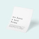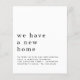 Ett bra värde PAPER (inte kort) alternativ UTAN KUVERTER i MINDRE storlek 4,5” x 5,6” och till ett budgetpris. (Standard A6-kuvert är närmaste storlek att passa). Enkla flyttmeddelanden för ny bostad. Rubriken är stor i snygg gemen med detaljerna under. Massor av vitt utrymme högst upp för en modern känsla! Anpassa enkelt texten till dina egna uppgifter.