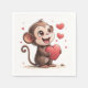 Paper Napkins Valentine's Day Monkey Red Hearts Pappersservett