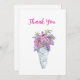 This greeting card features a charming bouquet of illustrated flowers, delicately wrapped in blue and white striped paper. The blooms burst in cheerful hues of pink, purple and lavender, with soft green leaves adding a fresh contrast. The striped wrapping has a crisp, nautical feel that adds a touch of rustic charm. Set against a clean, white background, the design feels bright, elegant, and full of joy—perfect for thank you card!