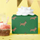 Ajoutez une touche ludique et festive à vos cadeaux de Noël avec ce papier cadeau unique ! Ce papier d'emballage présente un motif adorable de teckels portant des bois de renne sur un fond vert éclatant. Idéal pour les amoureux des chiens et pour tous ceux qui souhaitent apporter une touche de fantaisie à leurs cadeaux. Ce papier cadeau original égayera les fêtes et fera sourire vos proches dès qu’ils verront leurs présents sous le sapin. Faites ressortir vos cadeaux avec ce design charmant et amusant !