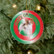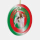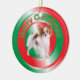 Denna julprydnad dekoreras på ena sidan med en bild av en papillon, och på den andra med ett julljus och en andedräkt. Bilden av hund kan ersättas med en egen bild.