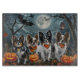 Lös ut den kusliga anden med denna kusliga Halloween-design med en flock hundar under en mörk, månbelyst himmel, omgiven av fladdermöss och lysande pumpor. Perfekt för dem som älskar en skymt av skrämmande kul med sina fyrbenta vänner!