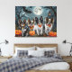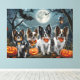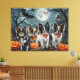 Släpp loss den kusliga anden med denna kusliga Halloween-design med en flock hundar under en mörk, månbelyst himmel, omgiven av fladdermöss och lysande pumpor. Perfekt för dem som älskar en skymt av skrämmande kul med sina lurviga vänner!