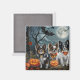 Släpp upp spookandan med den här eerie Halloween-designen med en hundar-förpackning under en mörk, månbelyst himmel, omgiven av flygande fladdermus och glödande pumpor. Perfekt för dem som kärlek en aning skrämmande roligt med sina hårigets vänner!
