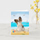 Söt hund som sitter på stranden är en perfekt presentidé för någon som älskar denna hundras.