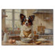 Tillsätt en lätt och elegant touch i din kök med denna Papillon-design som visar en glad hund som bakar i en mysig miljö. Med sina karakteristiska fjärilsöron, silkeslena päls och livliga personlighet ger detta konstverk charm och grace till alla utrymmen.