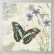 © Pela Studio / Vild Apple. En blå och brun fjäril med lila blommor och stammar. En benvit bakgrund med Fransk kan visas på bilden.