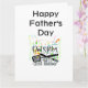 Mjukt hälsningskort med logotypen "Lycklig Fars dag" över ett färgat grillstäcke. Kort dikt i Pappa som jack av alla handelsområden.