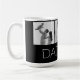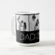 Pappa etablerade skriptdesign för muggen med tre foton för året. Pappa etablerade anpassad fotodesign för året med modern typografi, ett personligt etableringsdatum och ett speciellt foto. Ren modern stil som firar faderskap och familjens milstolpar. Foton kan vara svartvita eller i färg. Pappa etablerade anpassad fotodesign för året skapar en meningsfull souvenir för stolta pappor.