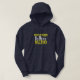 This hoodie is much better than I expected. top quality, true sizing, and really comfy. I was a bit worried that the lettering would be too dark on the navy blue hoodie, but once it arrived it was perfect. Easy to see the words, and the quality of the wording is fabulous. I will be buying more hoodies in future