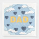 Den söta designen Lycklig Fars dag, pappa i kärlek, gult, vita moln och blåa hjärtan i himlar, 3d papper tecknad