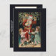 Jolly rödrobed vintage Santa som håller sin säck av presenter och holly med tre lycklig-barn som dansade omkring honom med mistletoomslag och guld högdagrar. Bakgrunden till färg är anpassade. Baksidan har en unik komplementgrafik för anpassningsbarna med redigerbar fält.