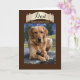 Fira Fars dag med att skicka den här söta, Golden Lab-Hund-hälsningskortet med en brun gräns och vit namn-rulla till Pappa i år. En inre kortevers medföljer.. ©SmudgeArt - Madeline M Allen