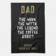 Pappa man Myth Legend Coffee Addict Funny Fars dag Kitchen Towel. Lustigt Fars dag kökshandduk med humoristiskt citat " Pappa, mannen, Myth, Legend, kafferegikten ". Texten är i modern djärv typografi. Du kan ändra vilken text som helst på handduken.