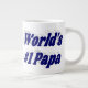 Mugg med världens främsta pappa i den mörk blått 3D-texten. Mugg finns i flera stilar och färg.