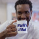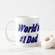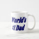 Mugg med världens främsta Pappa i den mörk blått 3D-texten. Mugg finns i flera stilar och färg.