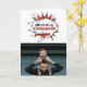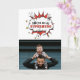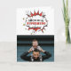 Rolig pappa superhjälte tecknad pratbubbla fars dag kort. Foto är på framsidan och baksidan av kortet - lägg till ditt foto. Texten är i en superhjälte-bubbla. Anpassa meddelandet inuti eller radera det.